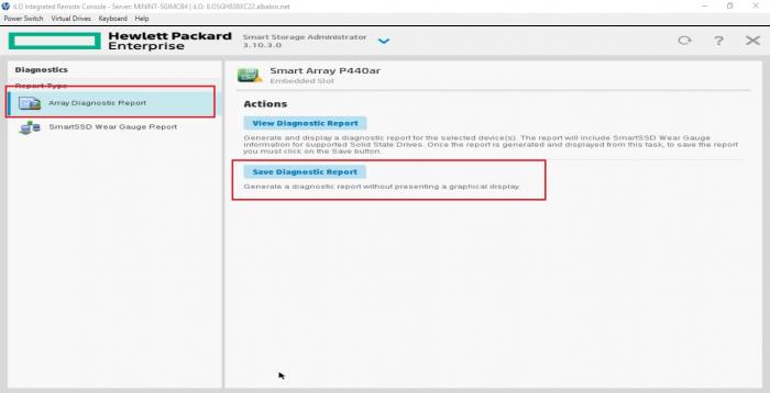 بعد از وارد شدن به مرحله Diagnostic در سمت راست گزینه Array Diagnostic Report را انتخاب می کنید و در سمت چپ در قسمت Actions بر روی گزینه Save Diagnostic Report کلیلک کرده و وارد مرحله بعد می شوید .
